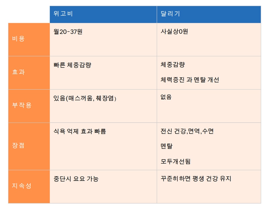 달리기와 비교하기 위해 요즘 가장 화제가 되는 체중 감량 주사제 위고비 정보를 정리해볼게요.